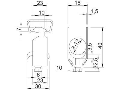 1156004 2056 M 12 FT. U-KLAMBER. METALLIST SURVEPLAADIGA. 8-12MM. OBO