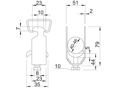 2056 M 46 FT U-KLAMBER METALLIST SURVEPLAADIGA 40-46MM ST FT