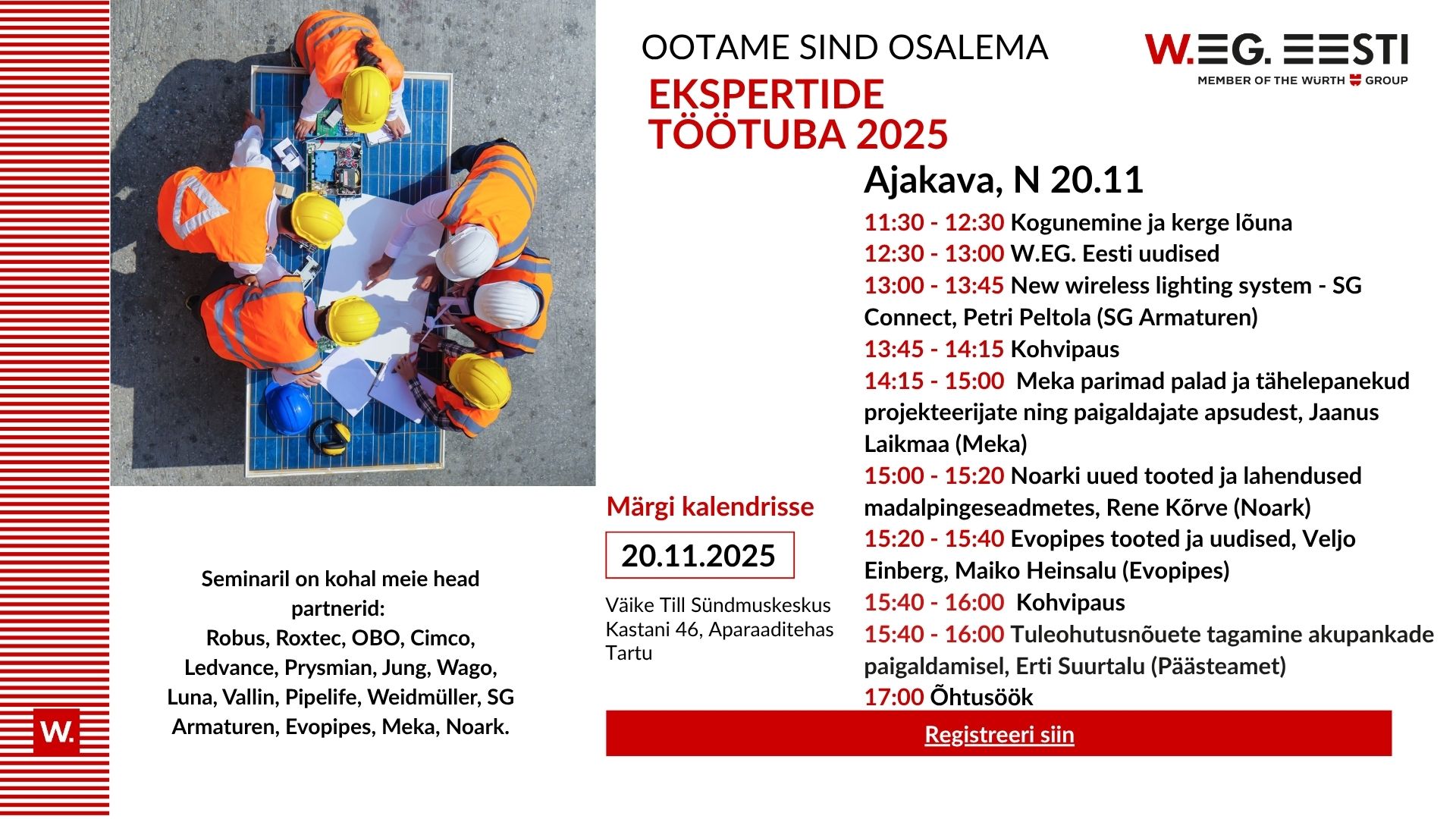 Ekspertide töötoad on loodud kõigile elektri-, ehitus-, tööstus- ja võrguvaldkonna spetsialistidele, kes soovivad olla kursis uusimate toodete, tehnoloogiate ja lahendustega.