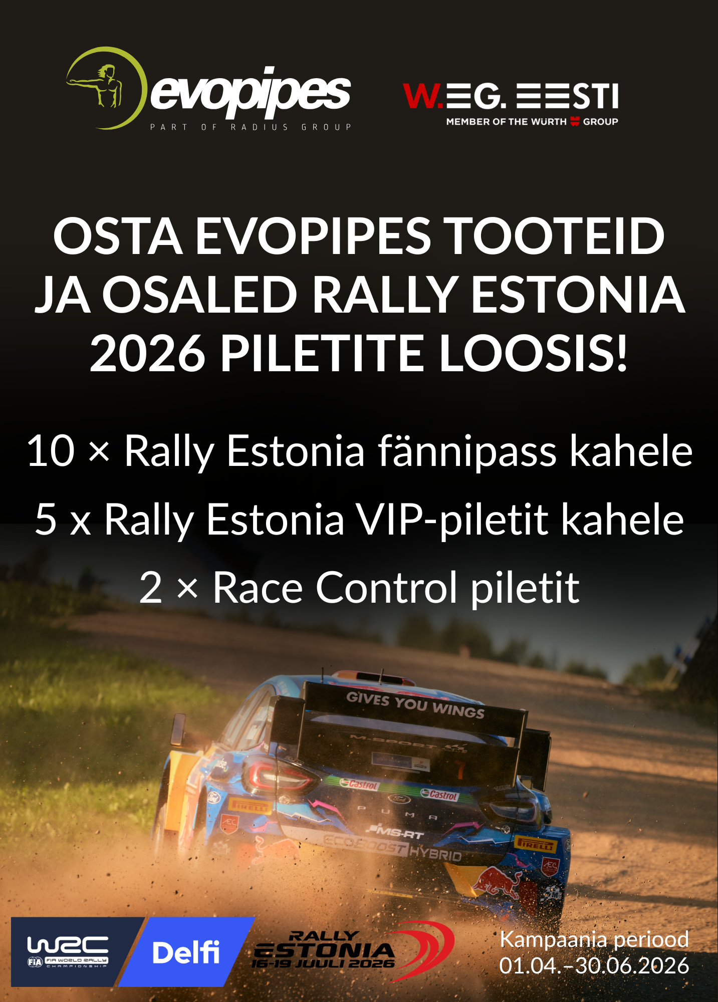 Osta Evopipesi tooteid kampaaniaperioodil ning võid võita elamuse WRC Delfi Rally Estonial.