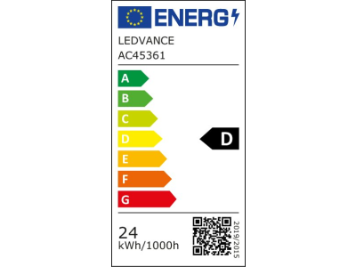 - Energy efficiency class according to EU regulation 2019/2015 D
