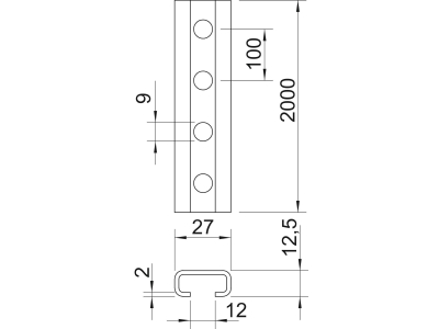 PROFIILLATT PERFOR.. AVA LAIUS 12 MM 2000x27x12.5 ST FT 2062 L 2M FT